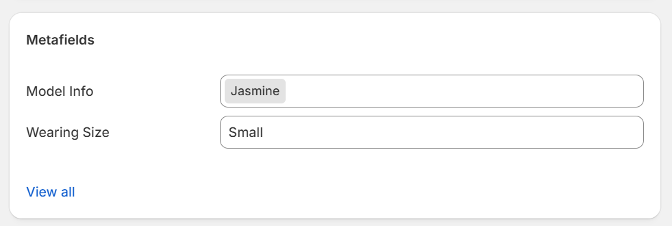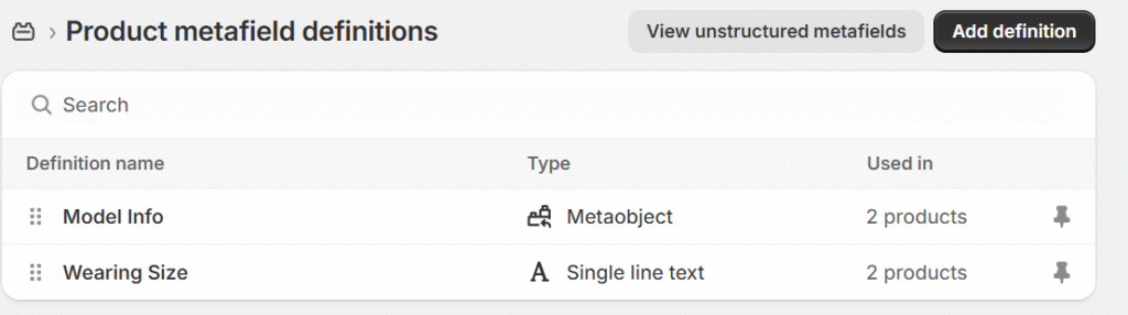 | 着用サイズ(例:Small) | カスタムメタフィールド(Productに紐づけ) |